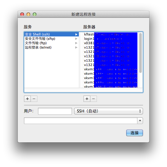 从一开使用ubuntu,到后来换到mac,一直使用系统自带的ssh命令,上传文件使用scp命令,由于平时使用并不频繁,也不觉得麻烦。再后来每天用到的机器多了,就不得不每次去公司wiki上查一下机器名,然后粘贴一下,次数多了,就迫切需要一个能像securecrt一样管理主机列表的功能。