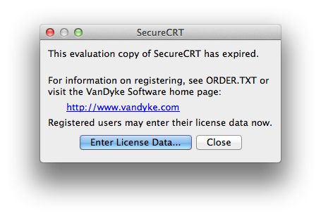 之后装了一个mac版securecrt,当然对于我来说,securecrt就比mac自带终端多一个好用的列表管理,其他功能基本不用。。,用了一个月到期啦。。。